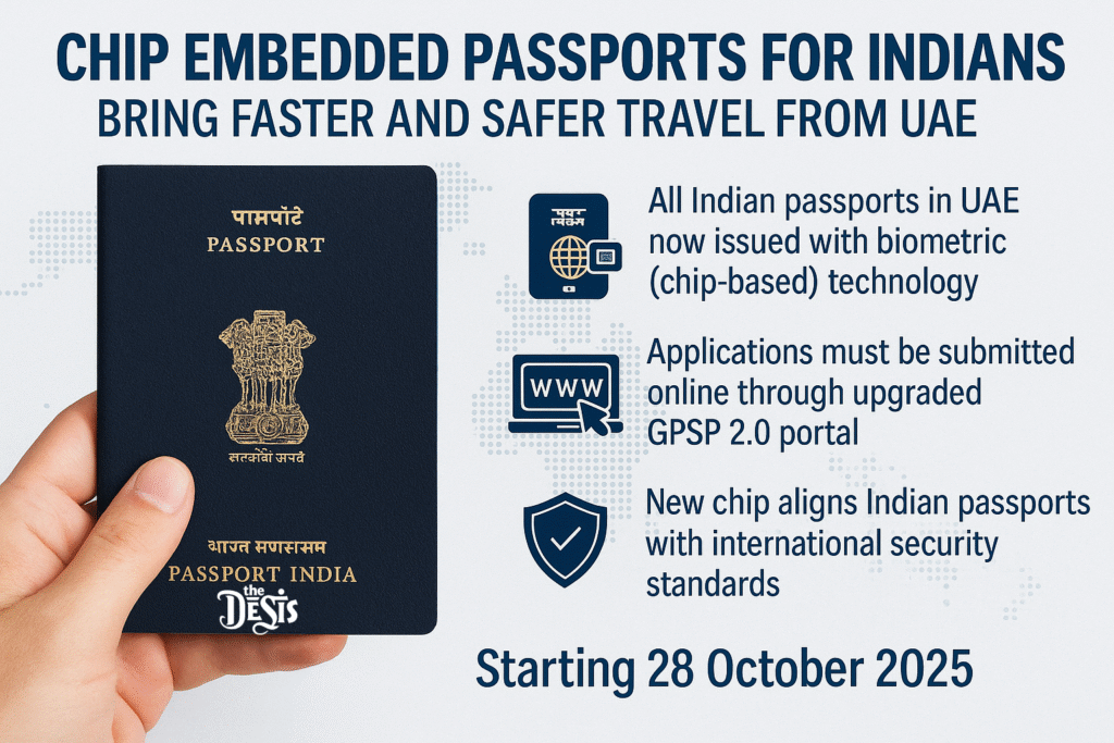 The Indian Embassy in Abu Dhabi and the Consulate General of India in Dubai have officially launched chip embedded passports for Indians living in the UAE. From today, all new Indian passports issued in the country will come with a secure microchip under the Global Passport Seva Programme (GPSP 2.0) — marking a major leap in digital passport technology and traveler safety